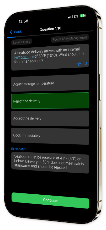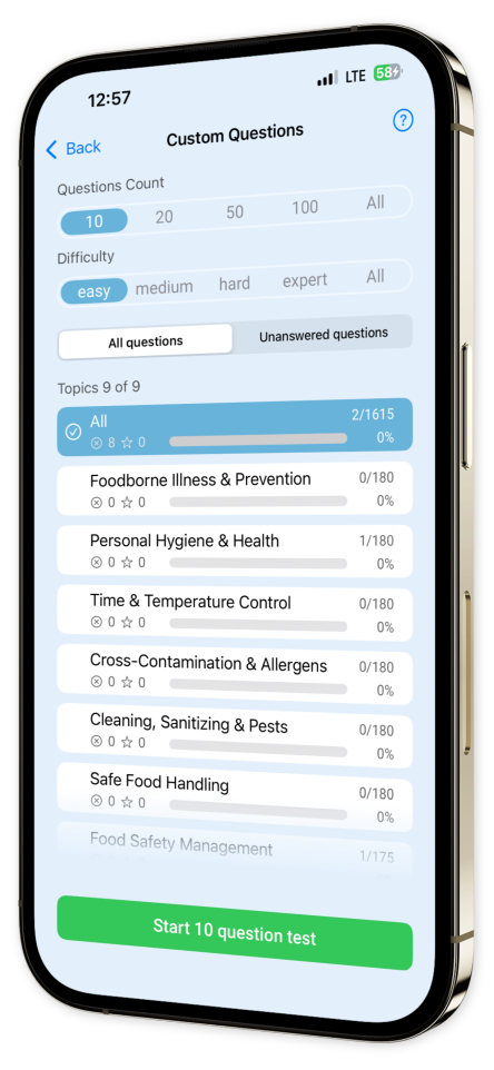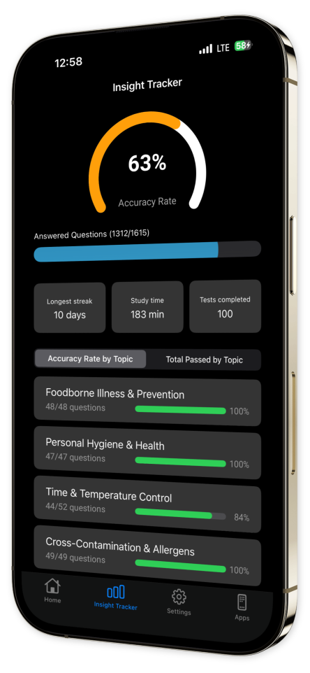 User-Friendly Interface: Experience a sleek and intuitive design that keeps your attention on mastering critical food safety concepts.